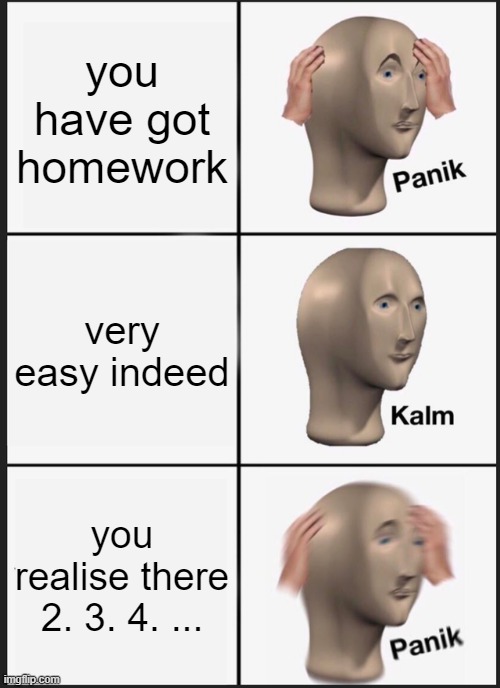 50+ Homework Easy Meme. It's easy to do my homework with the help of true professionals. 09/10/2021 · know your meme is a website dedicated to documenting internet phenomena: Has homework to finish gets drunk and makes meme comics instead funny meme picture. Why would you do that? Funny meme when you remember you forgot to do your homework picture. So yes, spongebob homework memes are a thing and there are pretty funny ones, too. Fall down the rabbit hole of funny homework memes, cat videos, and instagram, and you'll wake up from the trance in at least three hours. See more ideas about homework, funny, funny pictures. People often use the generator to customize established memes, such as those found in imgflip's collection of meme templates.however, you can also upload your own templates or start from scratch with empty templates. October 25th, 2021 10:30 pm.